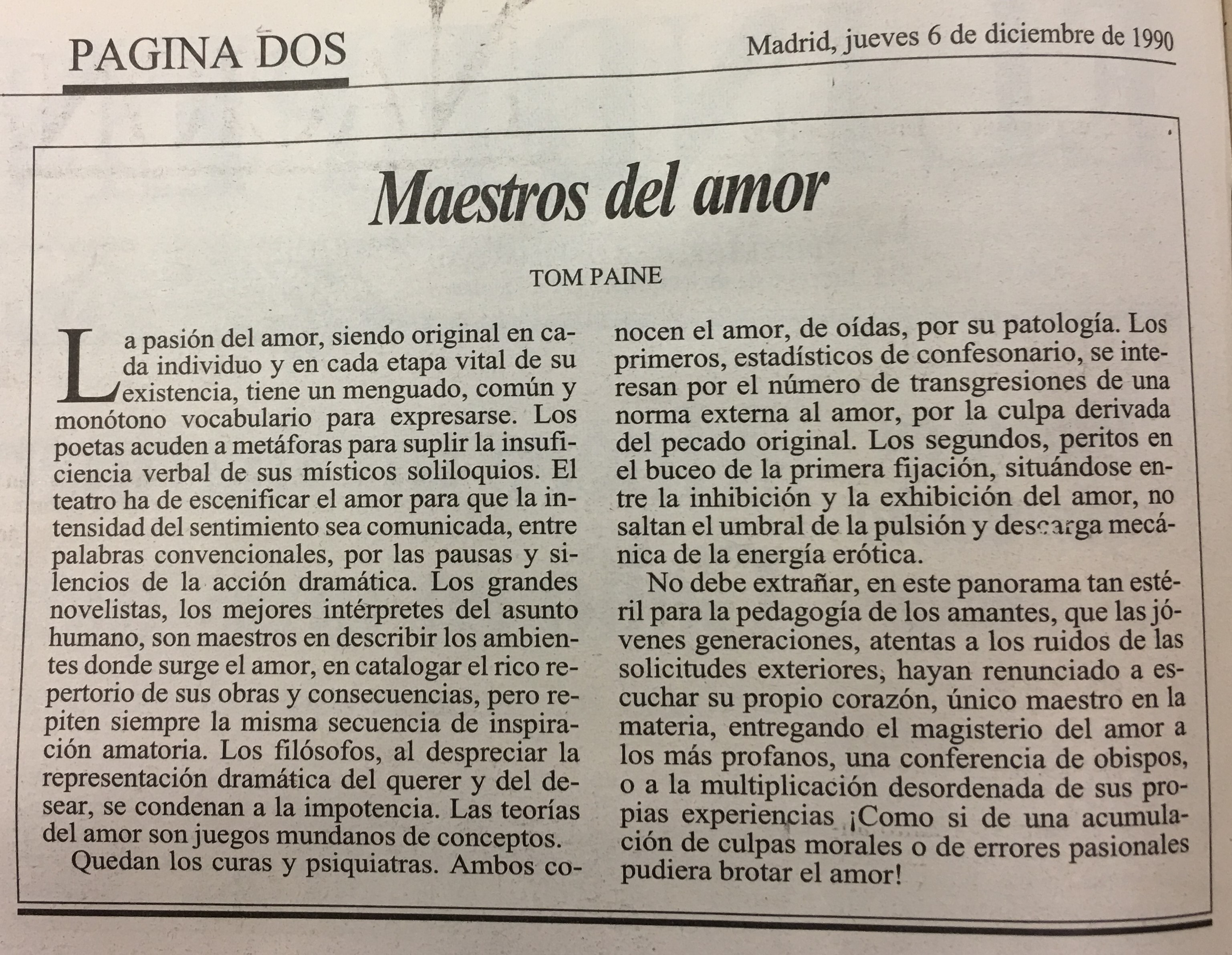 No debe extrañar, en este panorama tan estéril para la pedagogía de los amantes, que las jóvenes generaciones, atentas a los ruidos de las solicitudes exteriores; hayan renunciado a escuchar su propio corazón, único maestro en la materia, entregando el magisterio del amor a los más profanos; una conferencia de obispos; 0 a la multiplicación desordenada de sus proexperiencias iComo si de una acumula ción de culpas morales 0 de errores pasionales pudiera brotar el amor! pias