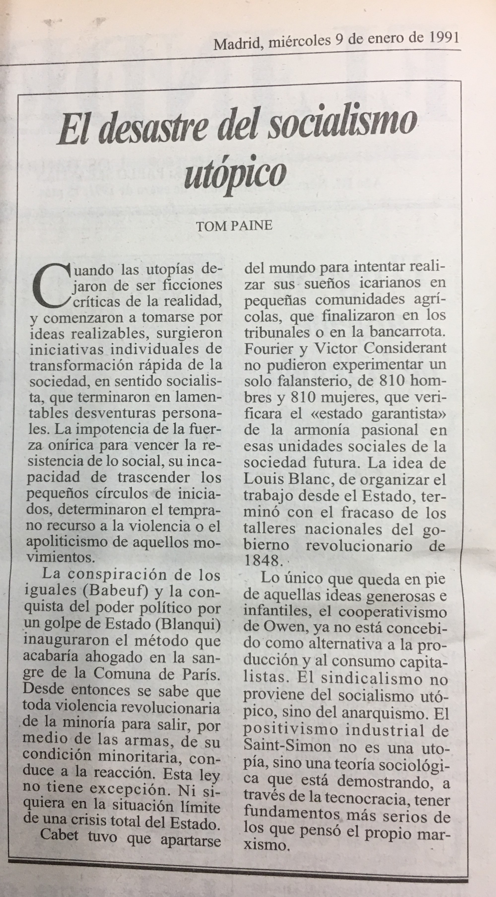 El desastre del socialismo utópico