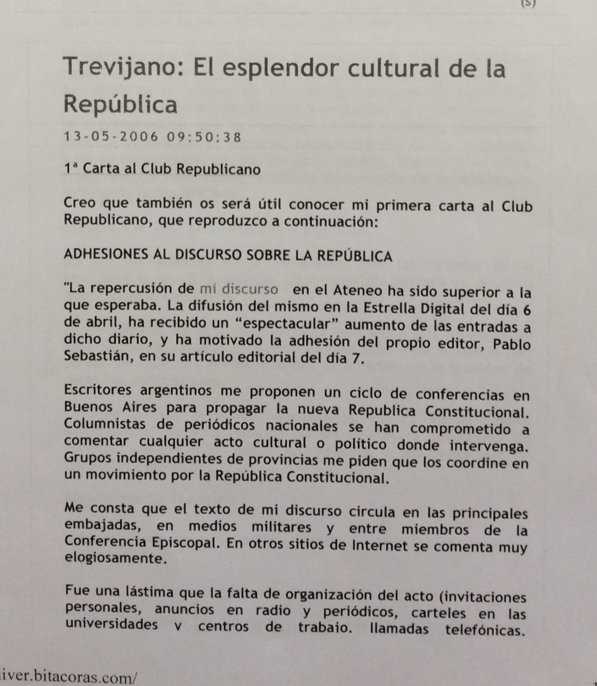 Creo que también será útil conocer mi primera carta al Club Republicano, que reproduzco a continuación: