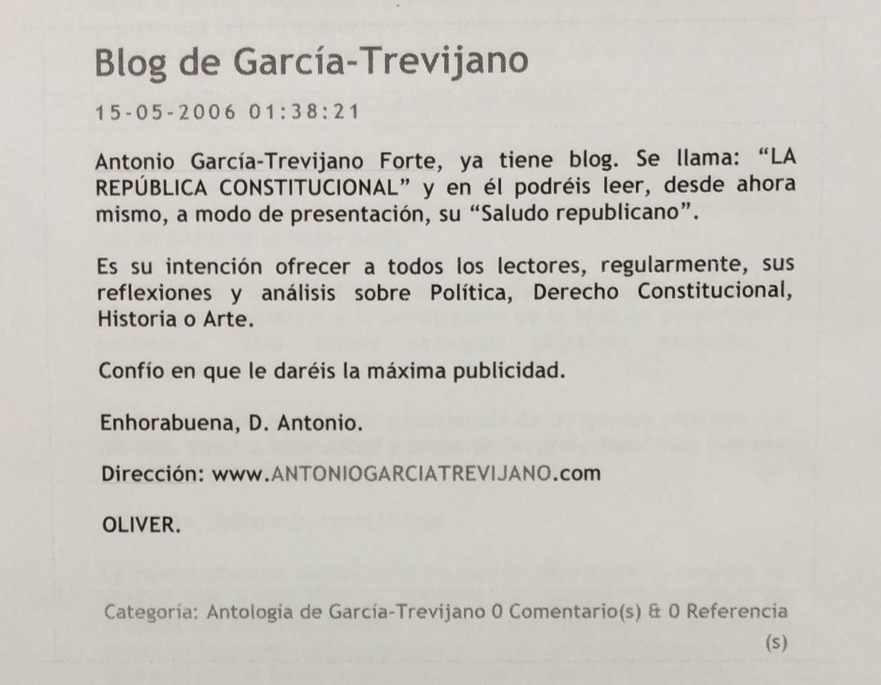 Antonio García-Trevijano Forte, ya tiene Se Ilama: LA REPÚBLICA CONSTITUCIONAL " y en él podréis leer, desde ahora m ismo, a modo de presentación, su "Saludo republicano blog: