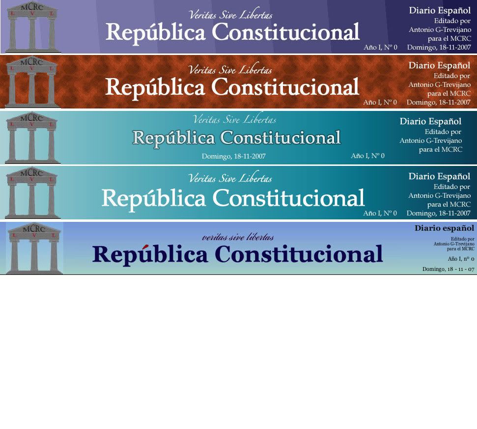 La cabecera de la portada me parece excelente, el logotipo griego contra un horizonte con gradiente azul refleja nobleza de principios, honestidad en los medios, competencia y honestidad intelectual, y sobre todo esperanza de ese amanecer Repúblico que trae el sol de la Libertad Política.